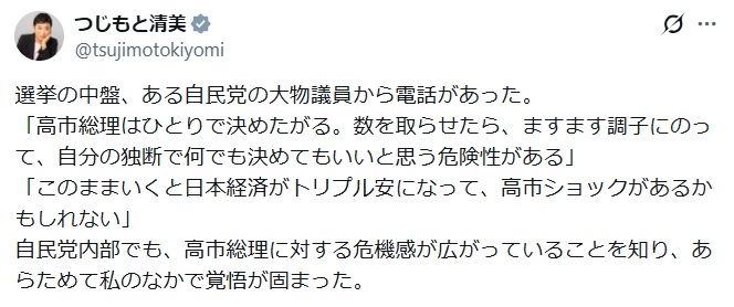 自民党内部でも、高市総理に対する危機感が広がっていることを知り、あらためて私のなかで覚悟が固まった。