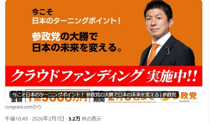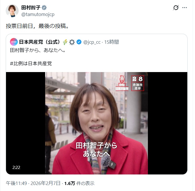 — 日本共産党(公式)🌾⚙ (@jcp_cc) February 7, 2026