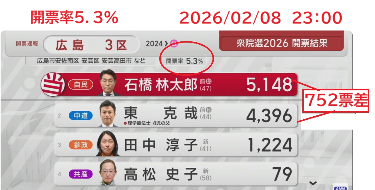 結構開いているのに、当確はだしてない。