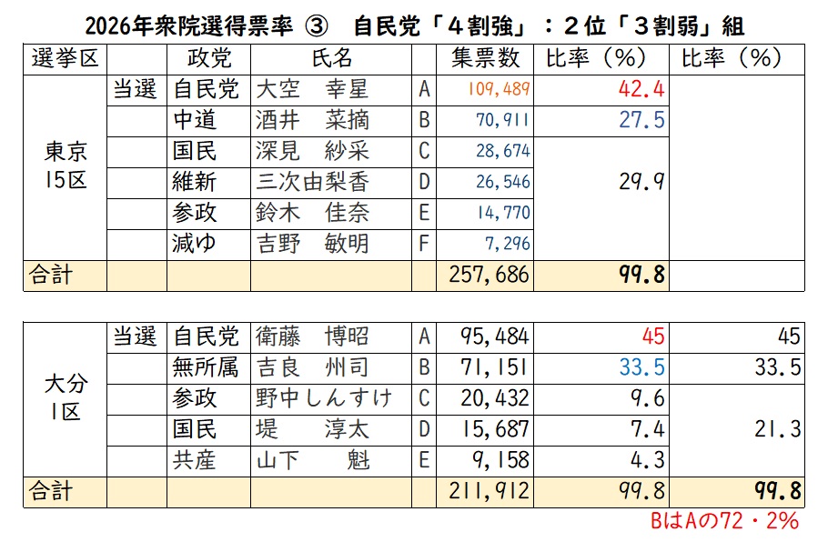 私も「結果がおかしいな」と思った選挙区を思いつくまま7か所の結果を数値化したら、やっぱり、おかしいと思いました。