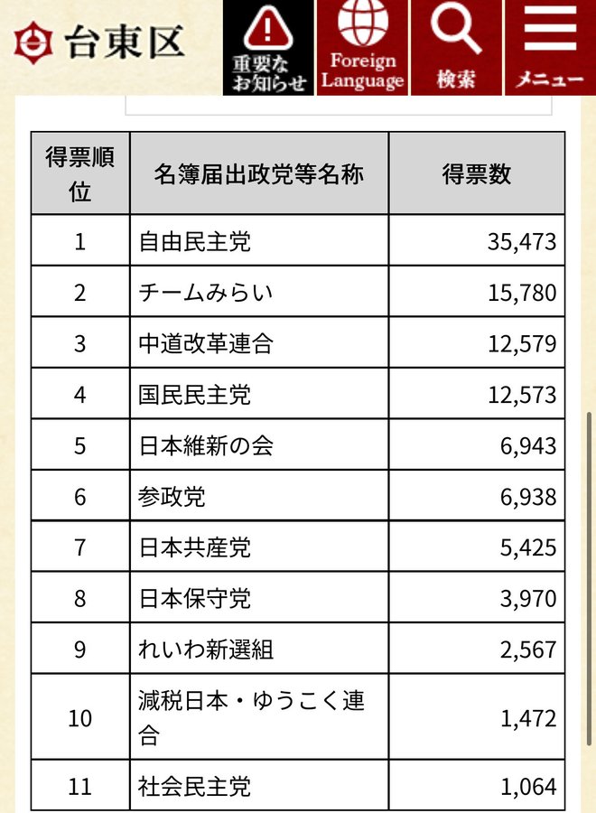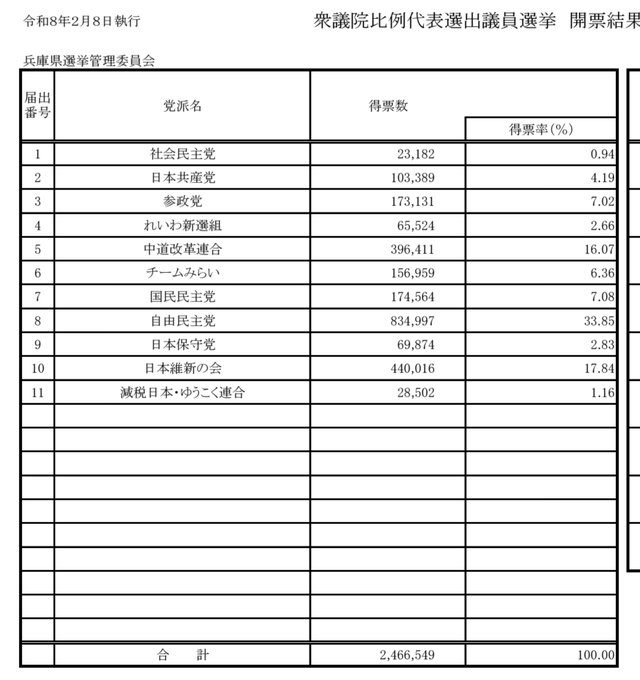 自民党の半分以上、国民民主党の1.5倍もの得票‼️