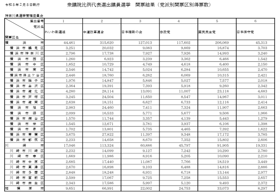 チームみらい、横浜市で、比例で参政党の2倍、国民民主とほぼ同数を獲得している。