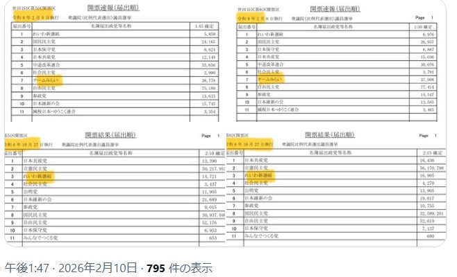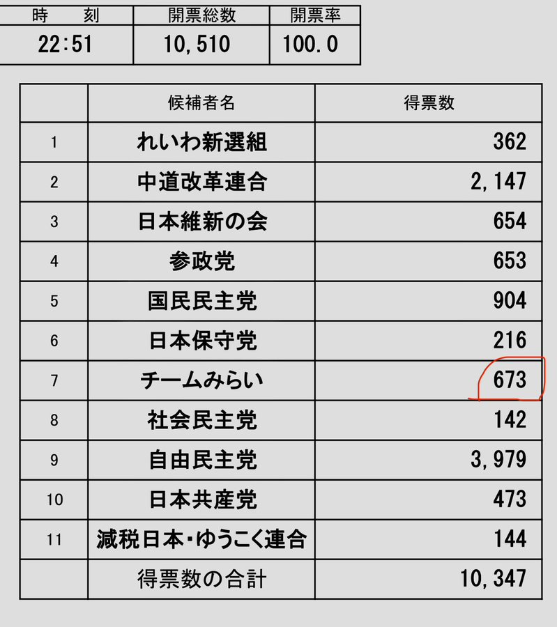 『チームみらい』1,137票は与党の