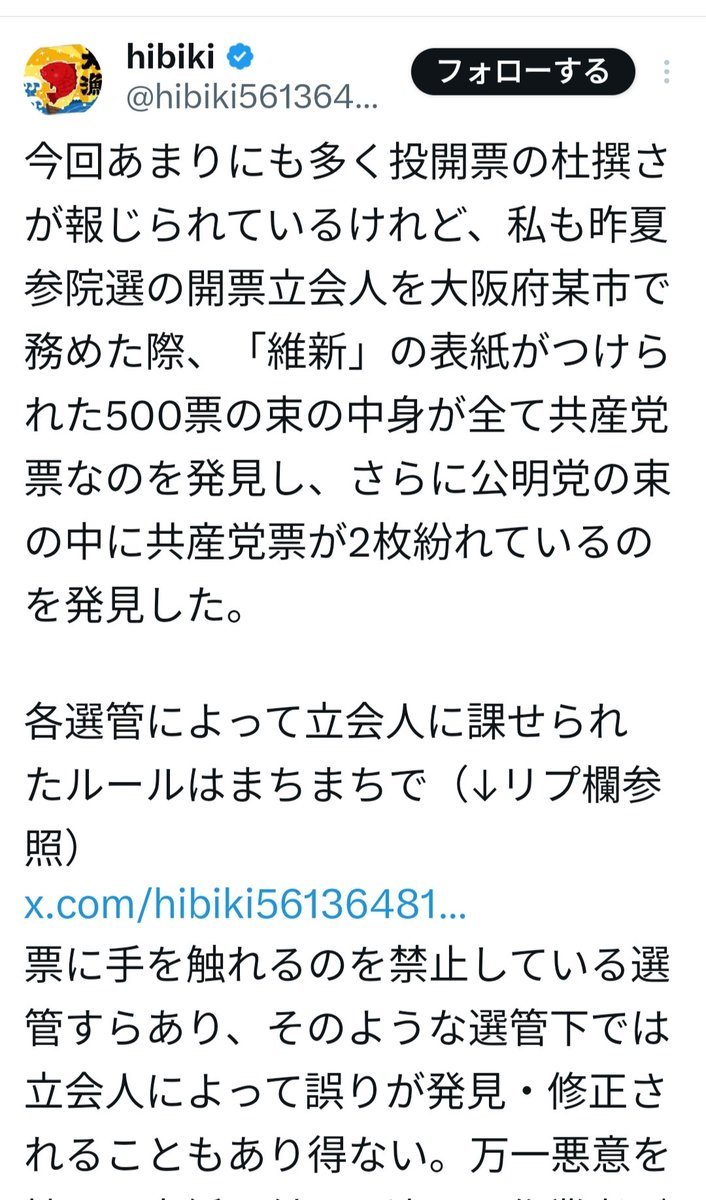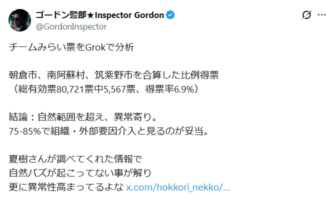 もう結構前から不正選挙は横行してるのだと思う。問題にならないから調子に乗って、今回さすがにやり過ぎて疑問に思う人が増えただけで…。
