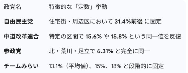 【拡散希望】「チームみらい」だけが浮いているのではなく、主要全政党の得票率が、あらかじめ決められた数値周辺になってる。これは、一部の党の票を書き換えているというレベルではなく、配分率が自治体ランクごとにあらかじめ定義されている 可能性が極めて濃厚。