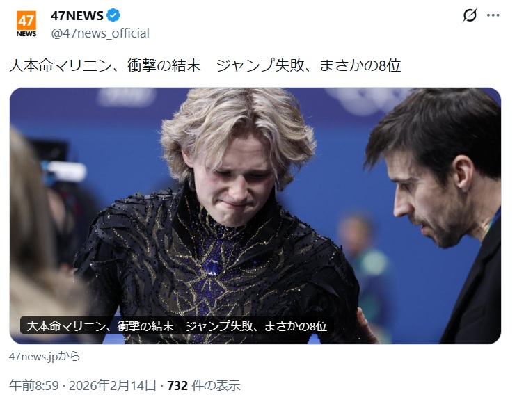 フィギュアスケートで魔物が発生。プルシェンコとヤグディンを足してさらにバージョンUPしたマリニン選手がソチの真央ちゃん状態になったらしい。そういえば、ネイサン・チェンも最初の五輪でこうなった。次の五輪で金メダルを取った。 再起を期待してる。