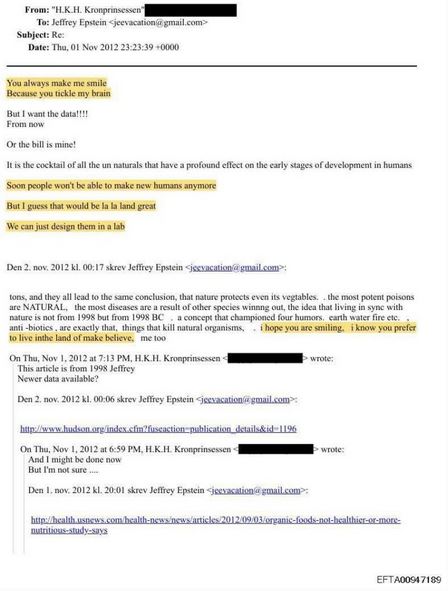 2012年11月に彼女がエプスタインに送った電子メールは、エプスタインとその関係者がクローン作製や実験室で育った子供たちに資金を提供していた秘密研究の知識をほのめかしており