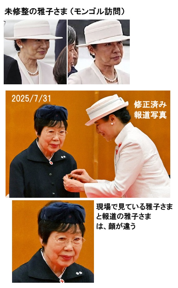 マサコのこの髪型は何だろう。戦後の成金マダムのよう。手塚治虫の漫画に出てきそうなおばちゃん。服も髪型もどうしてこう韓鶴子の趣味になるのだろう。顔つきもだんだん韓鶴子になってきた。