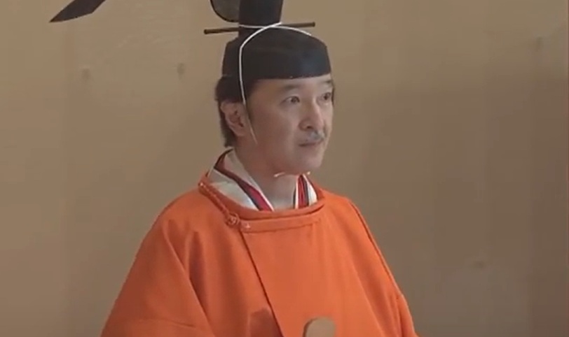 注目すべきは装束の襟元で、秋篠宮さまの時とは綴じ糸が異なる。