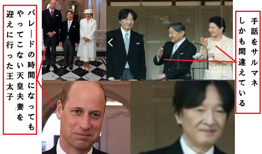 無理やりナルちゃん夫妻が国賓訪英したものの、パレードの時間いなってもやってこない天皇夫妻を迎えに行った英王太子。