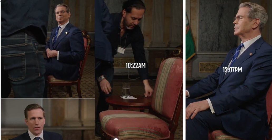 インタビューを受けていたベッセント財務長官、スタッフから「大統領が今すぐ来るように言っています」と伝えられ中座。 1時間半して戻ってくると、声が震え、まともに話せない状態に。
