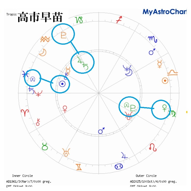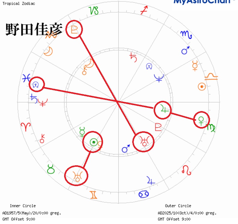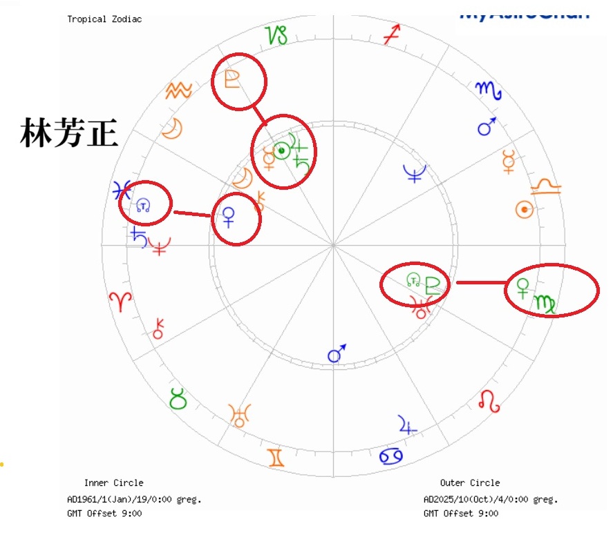 サナエと同年生まれなので運気がよく似てますが、林さんの先天のチャートのほうがはるかに迫力があります。総裁になったら、それなりに長く続きそう。