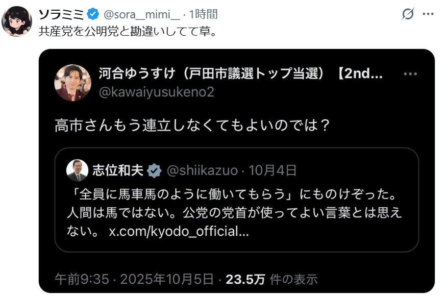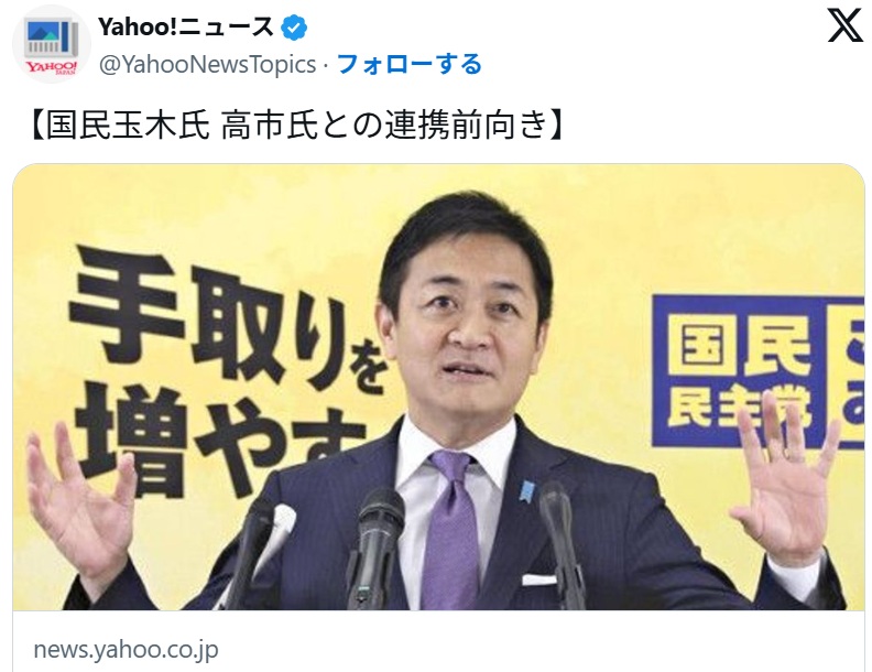 なもんで、高市が首班指名されない可能性が出てきたんですね。