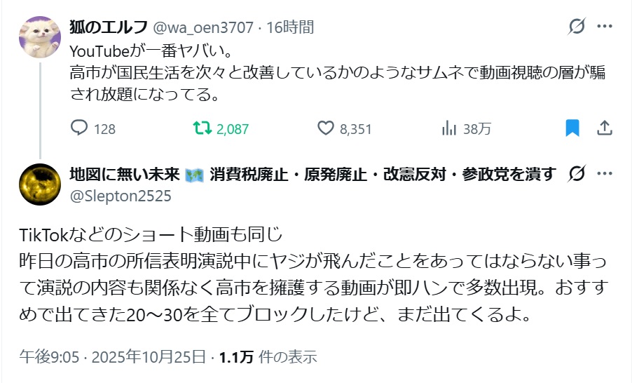 高市早苗には批判することすら許されないという空気が作られつつある。とてつもなく恐ろしい社会の到来だよ。
