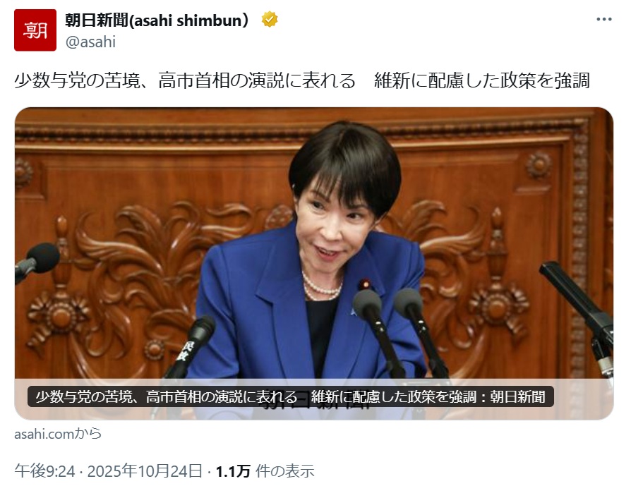 高市首相、高市政権とは書かない。政府と書き暈すあざとさ。
