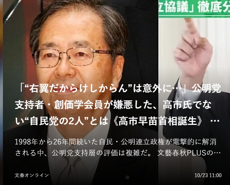保守、維新、参政、N国は、自民党安倍派の補完党、二次団体で与党と言っていいし、立憲が高市に屈した。統一教会のように解散請求されるかもしれない公明もサナエに屈する可能性はあるヨ。