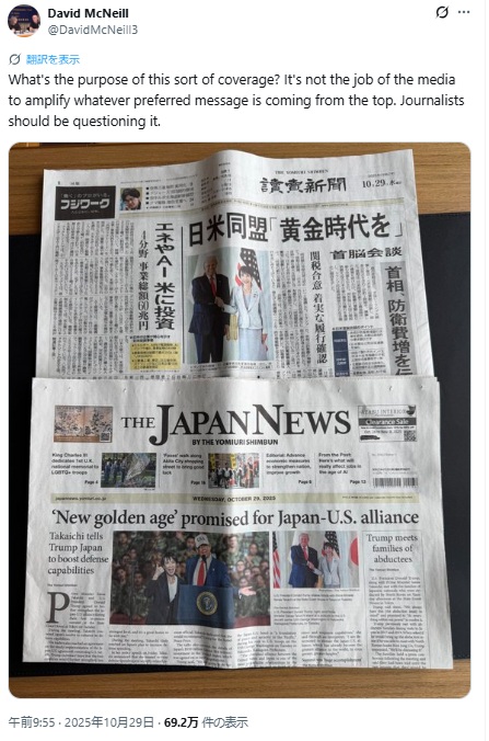 政権側に忖度する記事ばかり。高市政権=統一教会政権だから、当然、プロパガンダは洗脳じみたものになる。早く終わらせないと。