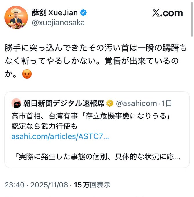 サナエが言い訳にしてる大阪の中国領事館の書き込み