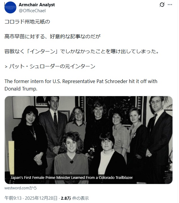 これが、問題箇所。 色々よく書いてはいるが、高市早苗が、シュローダーにとって 一介インターンに過ぎないことだけは確定している。