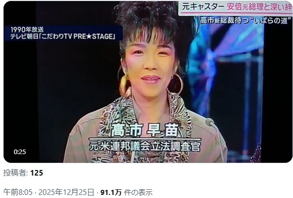 番組で「米連邦議会立法調査官」と存在しない官職を名乗る高市早苗