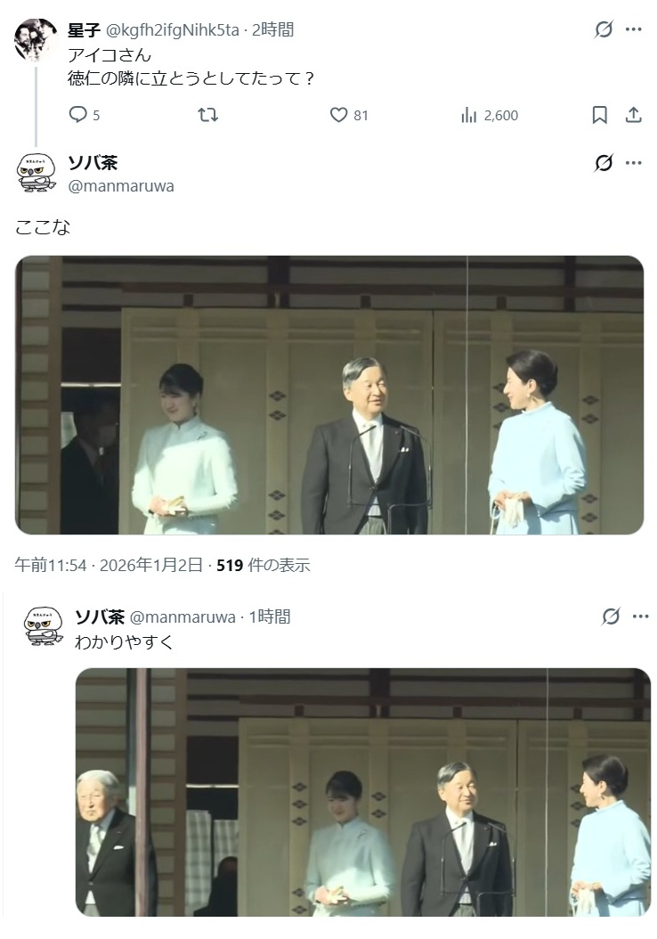 しかし、今までは、皇嗣の位置に立ち、どや顔で手を振り続けた偽愛子。