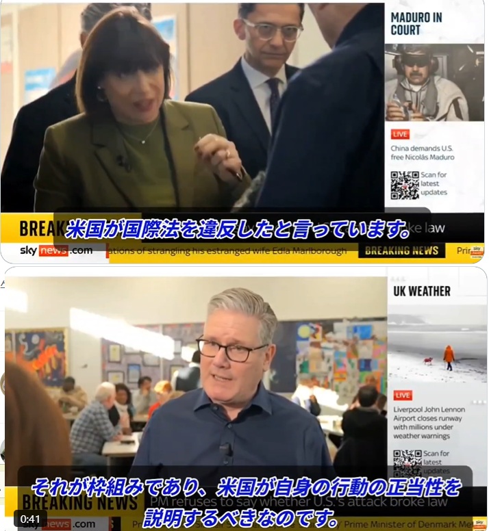 周りは「アメリカは国際法違反だ!」って大騒ぎしてるのに、スターマーさんはのらりくらりと逃げ回ってる感じだよね。