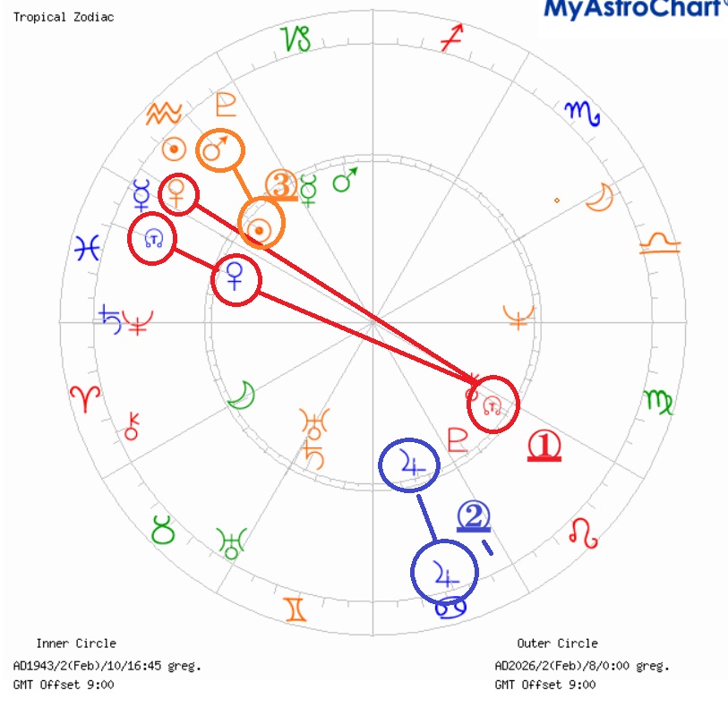 冥王星との0度、180度衛などの関係を作ってないところを見ると、CIAや世界経済フォーラムなどのグローバルな組織とは縁が切れてる感じ。実際、CIAの文春がサナエと統一教会のスクープを連打してます。