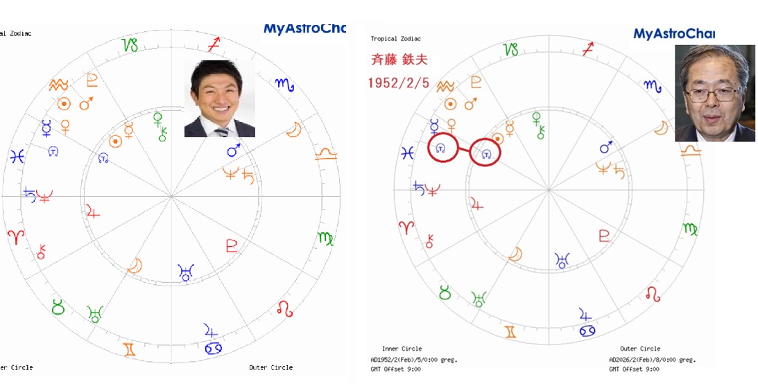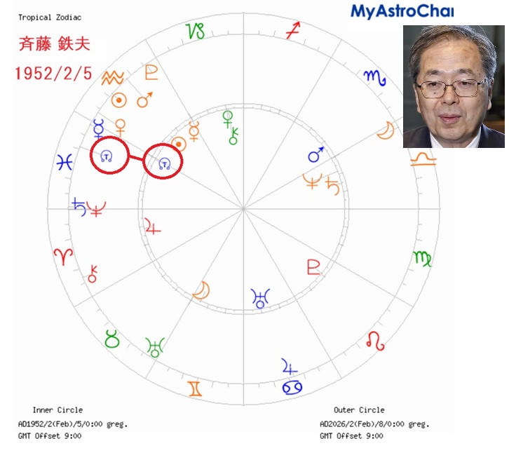 ②先天の天王星(変化、改革)と進行の木星(最大吉星)が0度合