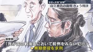 安倍晋三元首相(当時67歳)が奈良市で2022年7月に参院選の応援演説中に銃撃され死亡した事件で起訴された山上徹也被告(45)に対し、奈良地裁の裁判員裁判は21日、求刑通り無期懲役の判決を言い渡した。