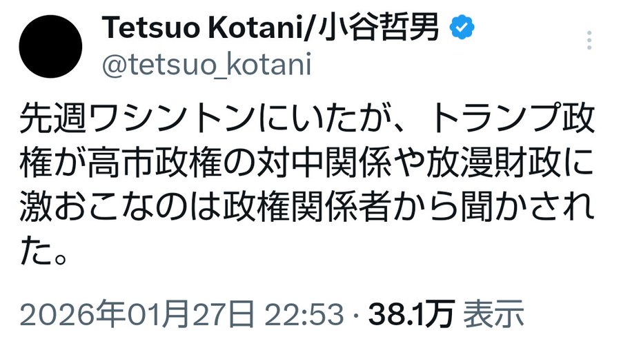 ・・・経済制裁は続いてる。中国政府は、高市非難すると支持率が上がるので沈黙してるらしい。