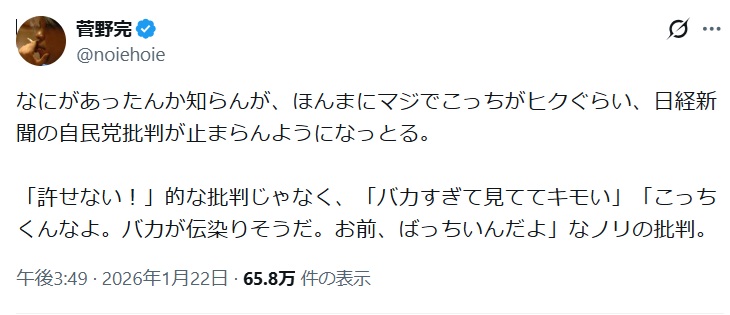 ・・・グローバルさまの兵隊三木谷会長が高市政権の財政政策を「バラマキ」と批判し始めた。竹中平蔵をはじめ、奥の院も同じ気持ちだろう。