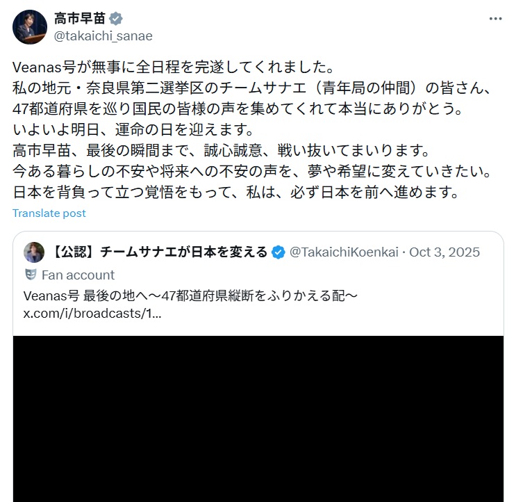 ④チームサナエが「高市後援会の公認アカウント」といってる