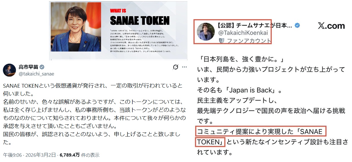 高市が無関係だと主張するSANAE TOKEN